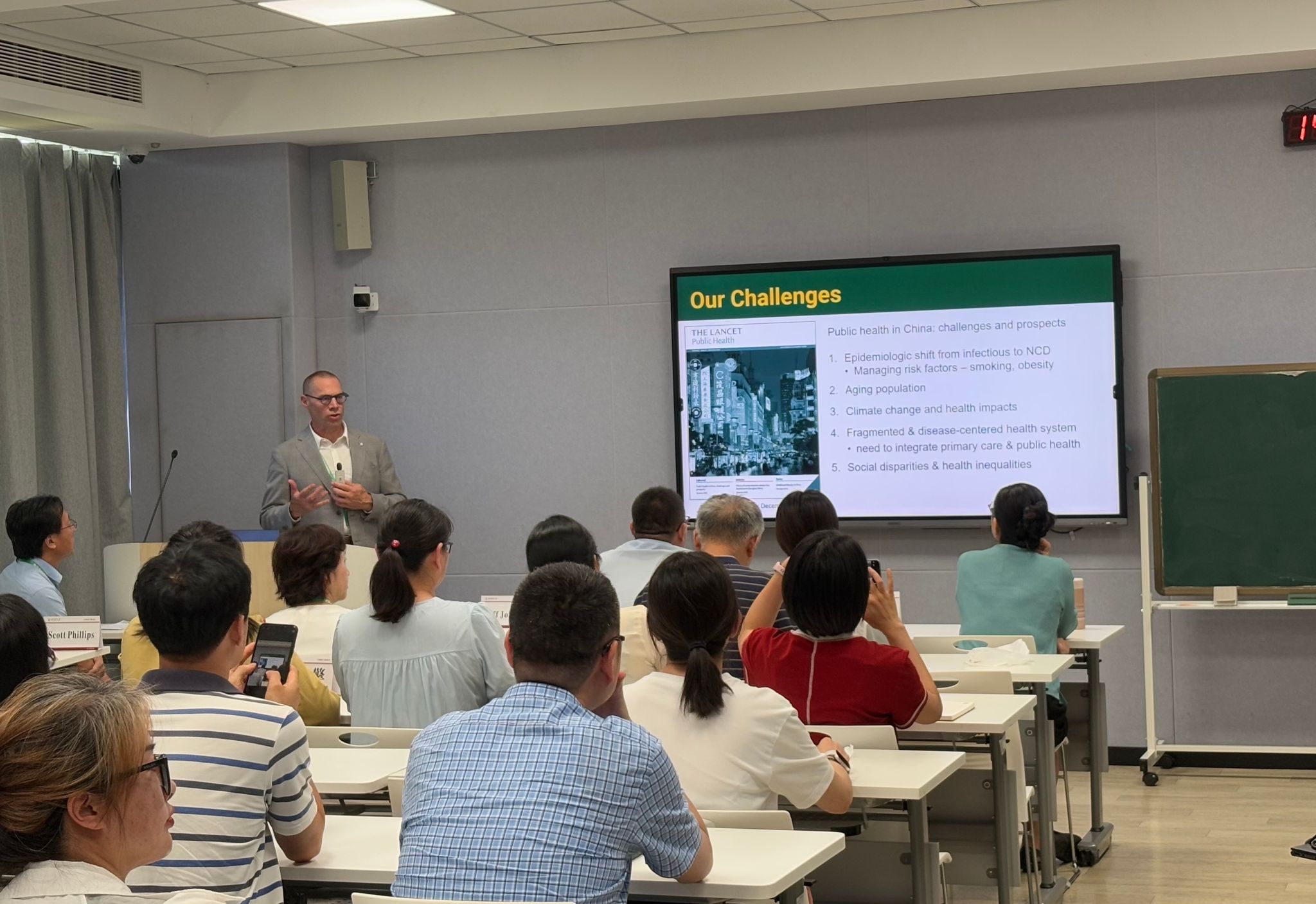 阿尔伯塔大学小黄书 院长Jeff Johnson教授以“中加公共卫生研究与教育:共同的挑战与机遇”为题,系统分析了两国在公共卫生领域面临的相似挑战,并探讨了未来合作共赢的巨大潜力。