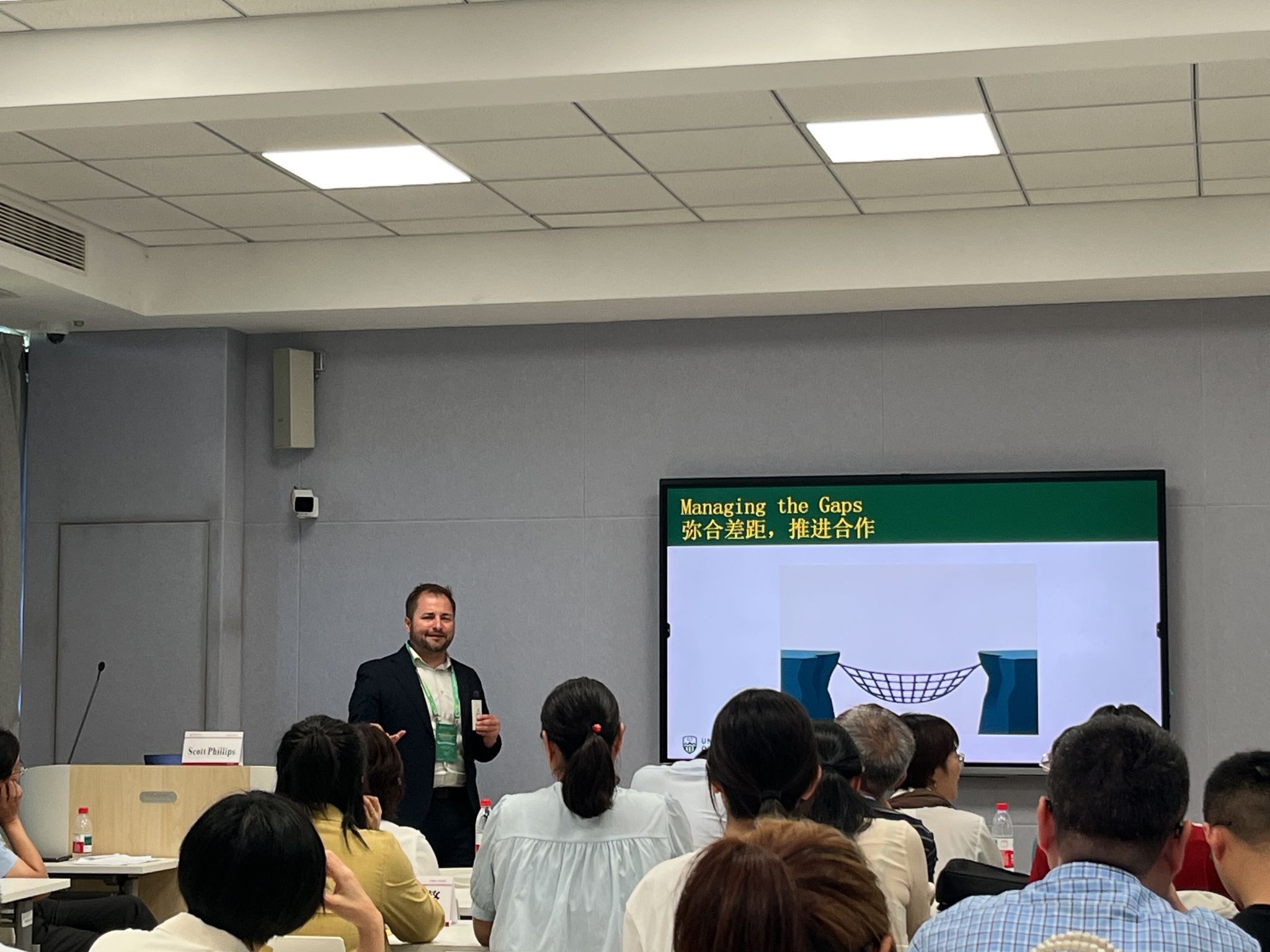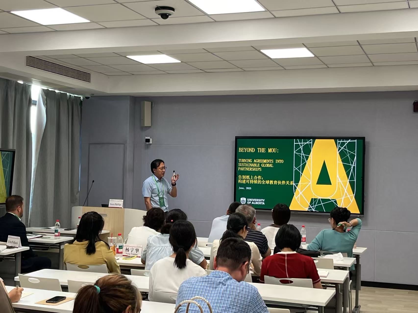 阿尔伯塔大学小黄书 项目主管Scott Phillips先生则聚焦合作实效,分享经验“告别纸上合作:构建可持续的全球教育伙伴关系”,为深化院校间实质性合作提供了宝贵思路。