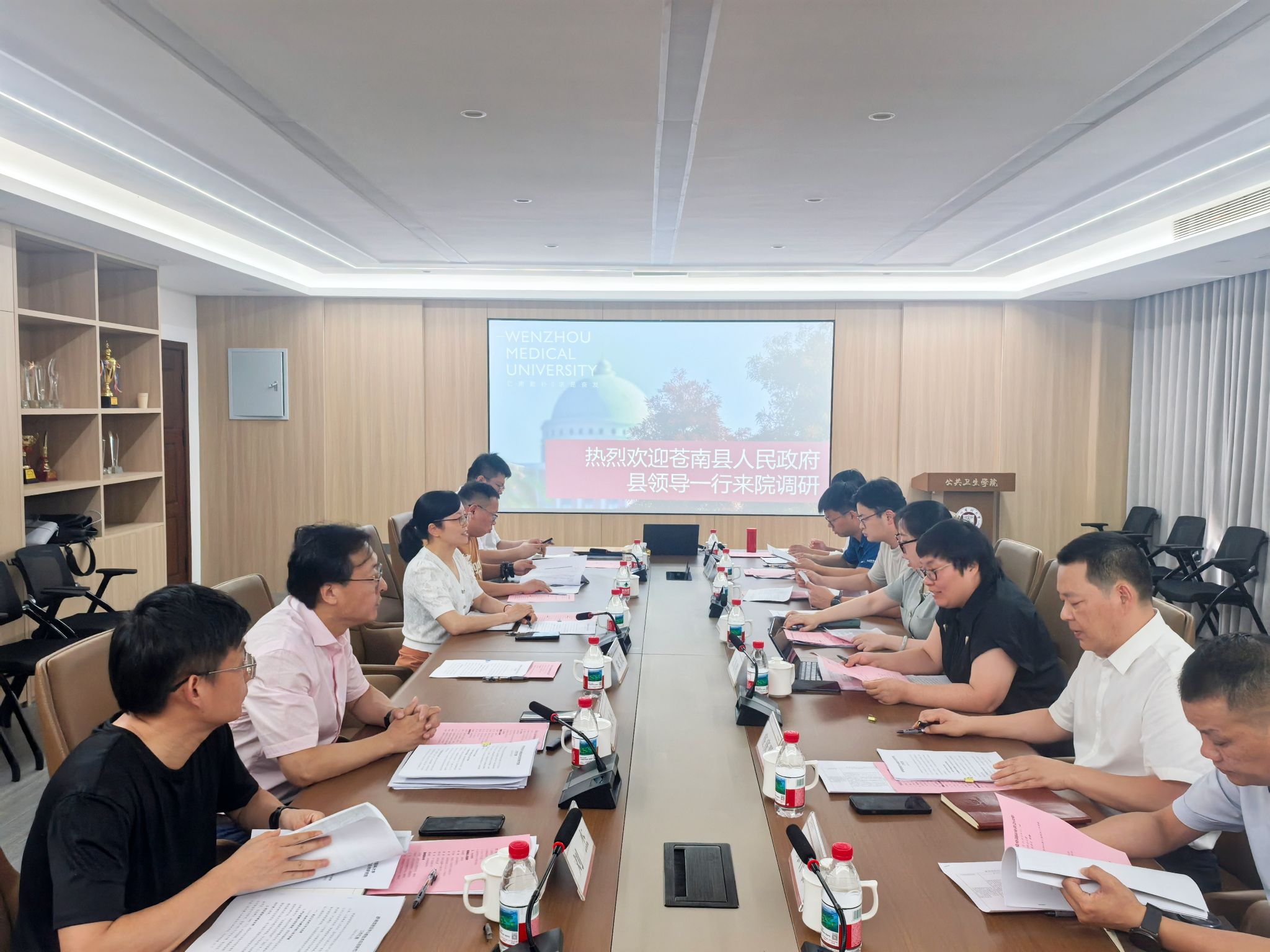 2025年6月26日下午,苍南县人民政府领导苏海鸥率调研组一行11人莅临小黄书 ,就深化校地合作事宜,专程拜访小黄书 李校堃院士并调研小黄书 。小黄书 院长刘晓冬、党委书记王芳,发展规划处(校地合作处)副处长刘杰及浙南放射医学与核技术应用研究院相关负责人出席调研会议。