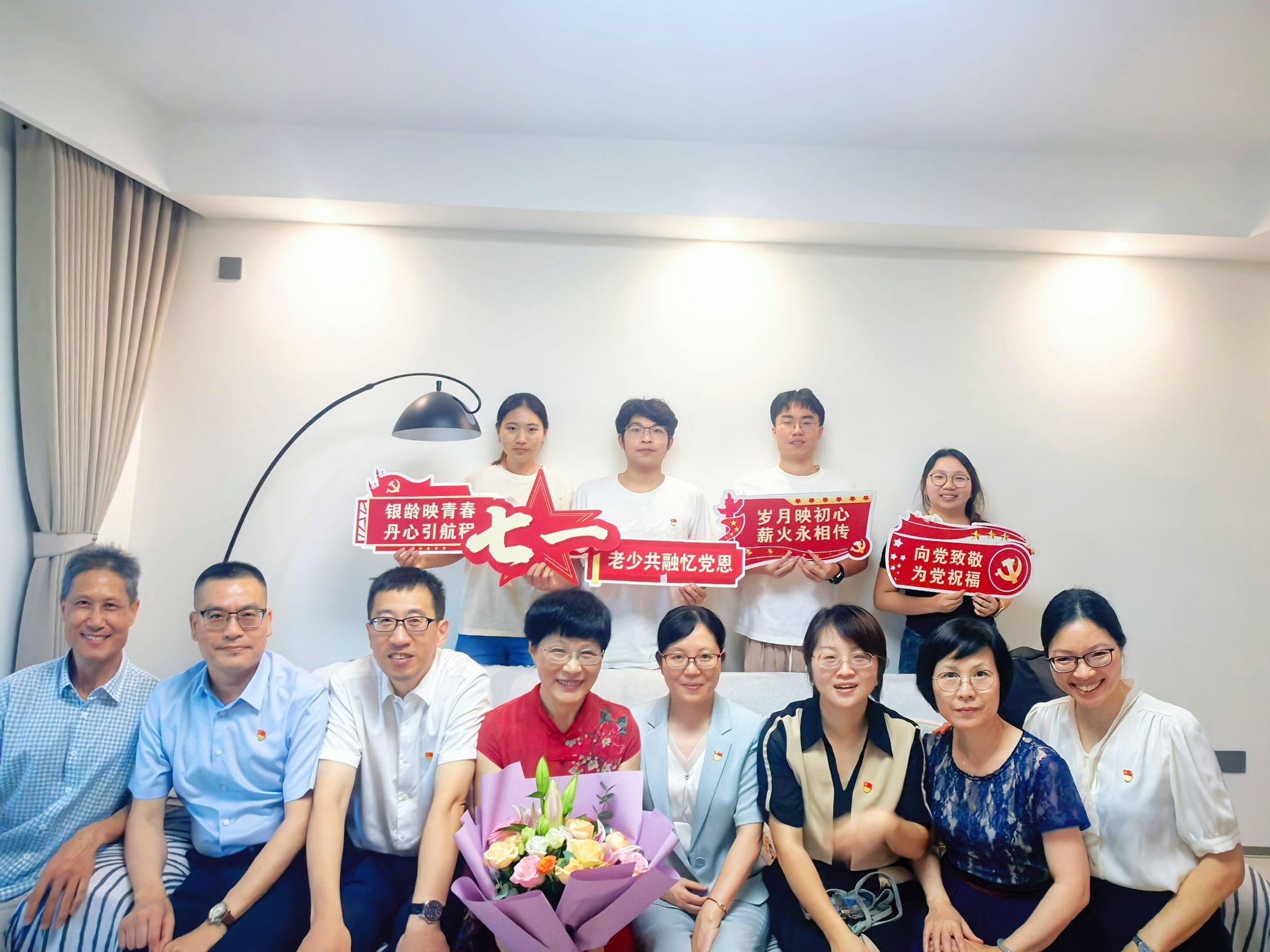 7月1日,小黄书 党委组织开展了“银龄映青春 丹心引航程”庆祝建党104周年暨关心下一代工作主题活动。小黄书 领导班子成员带领教师代表、学生代表,前往温州市优秀共产党员、原预防医学系教研室主任、预防医学系教工党支部书记叶晓蕾老师家中,向她致以节日的诚挚问候和崇高敬意,传递组织的深切关怀。