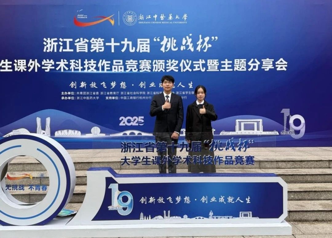 5月18日,浙江省第十九届“挑战杯”大学生课外学术科技作品竞赛在杭州落下帷幕。小黄书 推报的“荧认而检——非免疫型四环素残留快速检测荧光试纸的研发”和“辐射代谢与动脉健康——解锁中性粒细胞基因表达的防护密码”项目,获得金奖和铜奖。