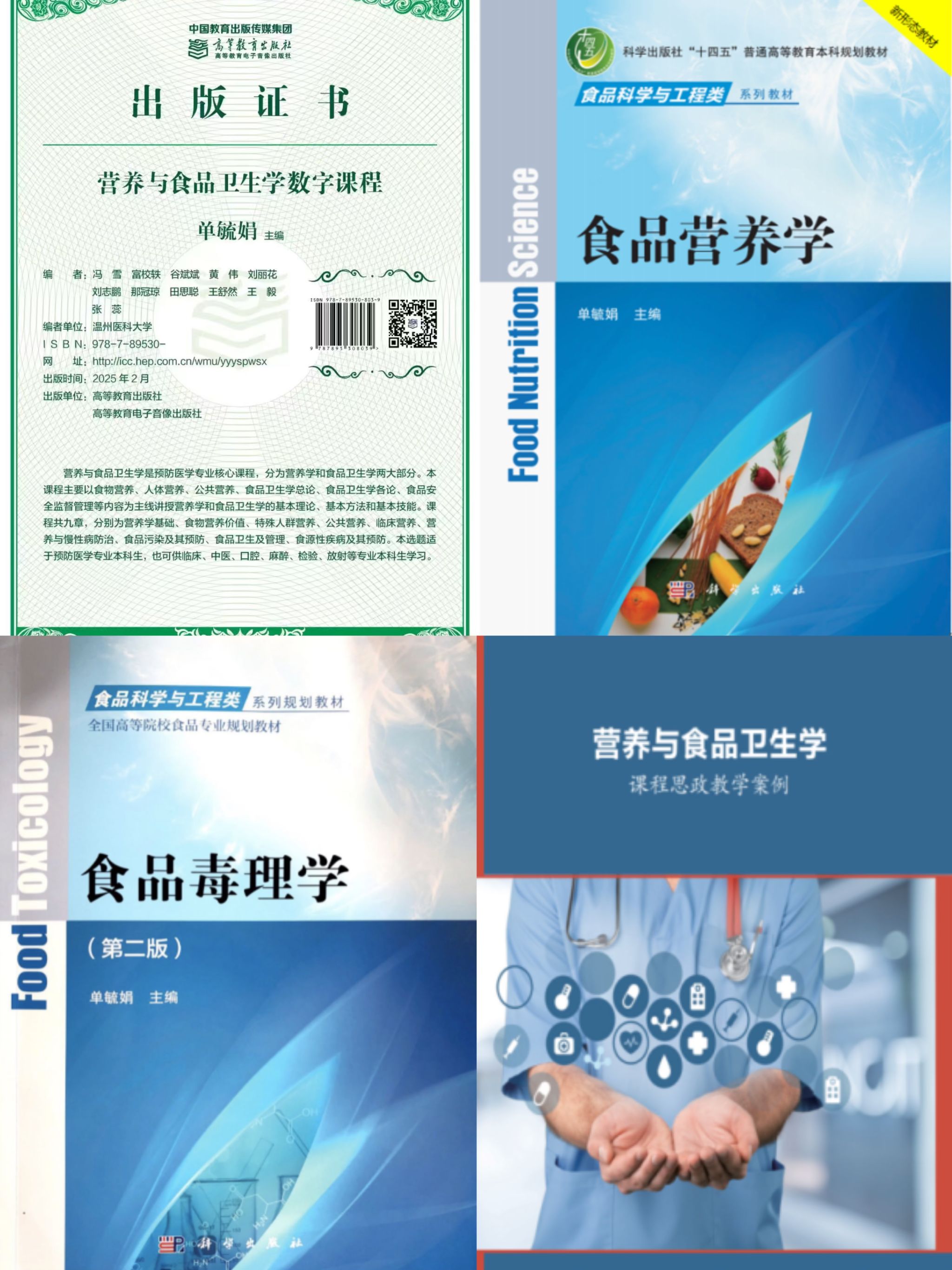 主编教材:《食品营养学》《食品毒理学》等新形态教材,被全国20余所高校采用;