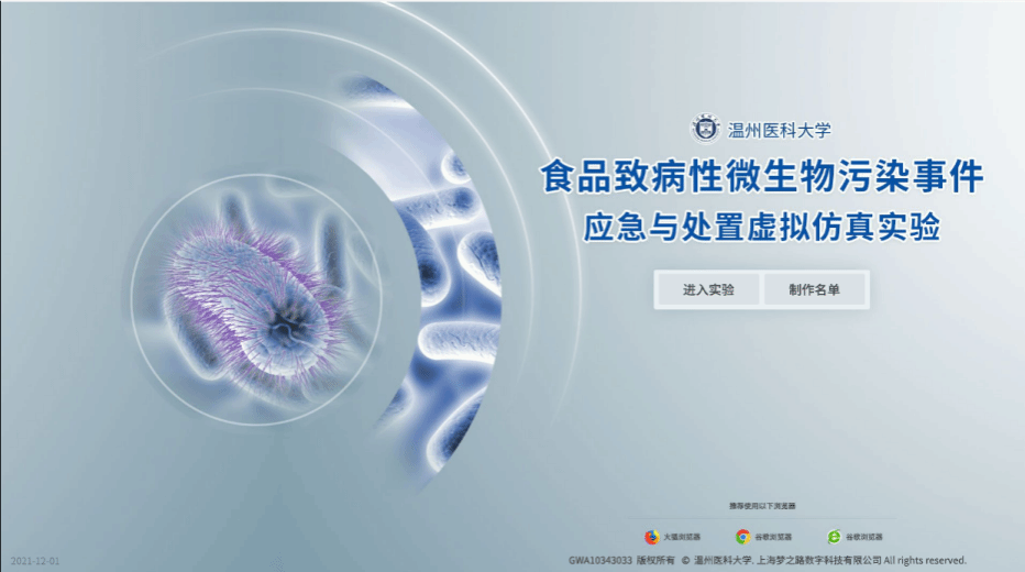 虚拟仿真实验平台:“食品致病性微生物污染事件应急与处置”虚拟实验,已运行4期,4765名学生完成实操;