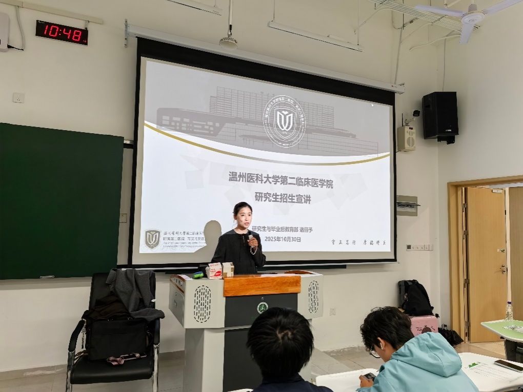 为切实落地学校研究生招生宣传工作部署,进一步挖掘优质生源资源、提升研究生生源整体质量,同时深化学校在华东地区高等医小黄书 校中的品牌影响力,10 月 24 日,小黄书 学科与研究生工作办公室主任许晓玲、浙江省肿瘤医院教学部主任林叶华、第二临床医小黄书 研教部诸俪予一行专程前往安徽医科大学,开展 2026 年研究生招生专场宣讲会。安徽医科大学小黄书 及临床医学相关专业近 100 名本科生积极到场参会,宣讲活动得到该校学生处及对应院系的大力支持与全力配合。