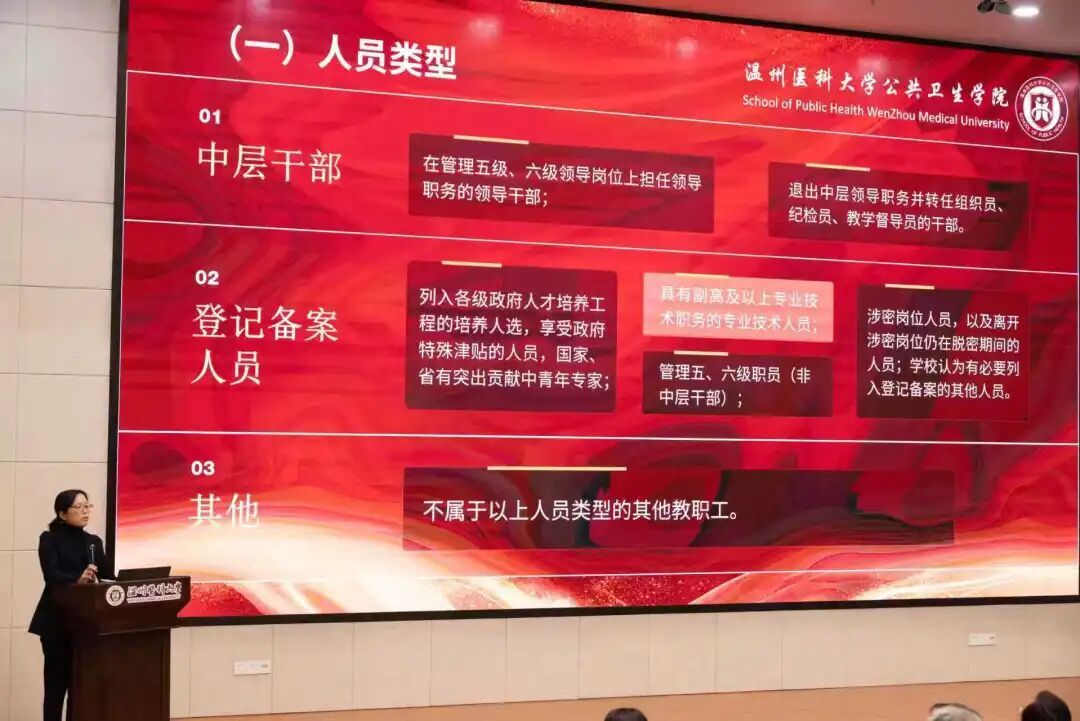 王芳围绕2026年度学院重点工作作出全面部署。她强调,要始终坚持和加强党的全面领导,充分发挥基层党组织战斗堡垒作用和党员先锋模范作用,强化意识形态风险防范意识,坚决守好主阵地,筑牢学院事业发展安全底线。她指出,要提高政治站位,树立“一盘棋”思想。公共卫生与预防医学一级学科博士点申报是2026年度的核心任务,应全院全员参与、协同作战,专班统筹专项推进,细化任务清单、压实各方责任,推动申报工作落地落实。她强调,要以申报促建设、以建设提质量。学院以博士点申报为总抓手,倒逼学科内涵建设实现提质增效,全力推动学院高质量发展,为学校“双一流”贡献公卫力量。她就教职工因私出国(境)工作提出要求,严格执行审批管理制度,规范审批流程,强化全过程监督,确保行程合规、目的明确。