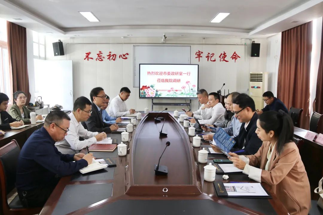 10月10日,温州市委政研室室务会议成员、办公室主任徐伟俊率队来我校浙南放射医学与核技术应用研究院调研,研究院院长刘晓冬、理事长王敏共同接待徐主任一行。