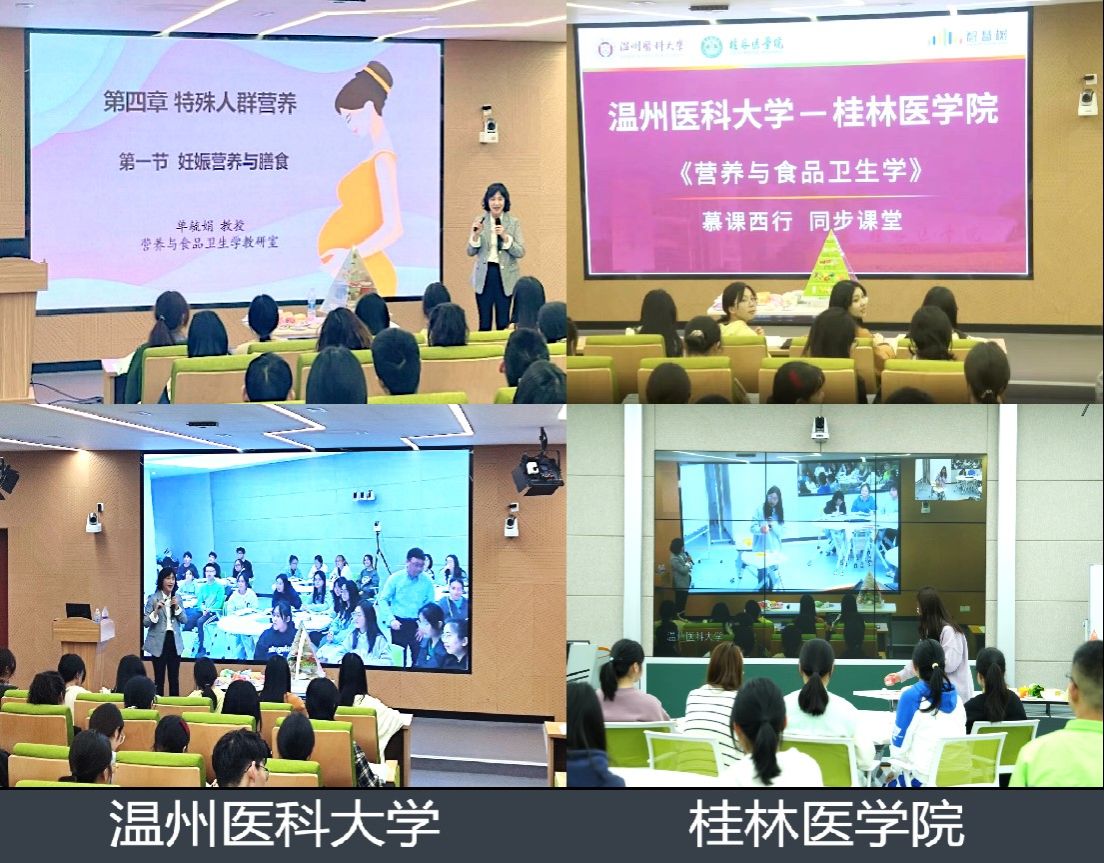 2023年4月8日,小黄书 公共卫生与管理小黄书 单毓娟教授依托智慧树翻转课程平台和我校沉浸式智慧教室,带领温医大21级预防医学本科生和桂林医小黄书 20级预防医学本科生,开启《营养与食品卫生学》“慕课西行·同步课堂”直播之旅。实现温州桂林相隔千里,同频共振打破时空壁垒,莘莘学子共享一堂好课。