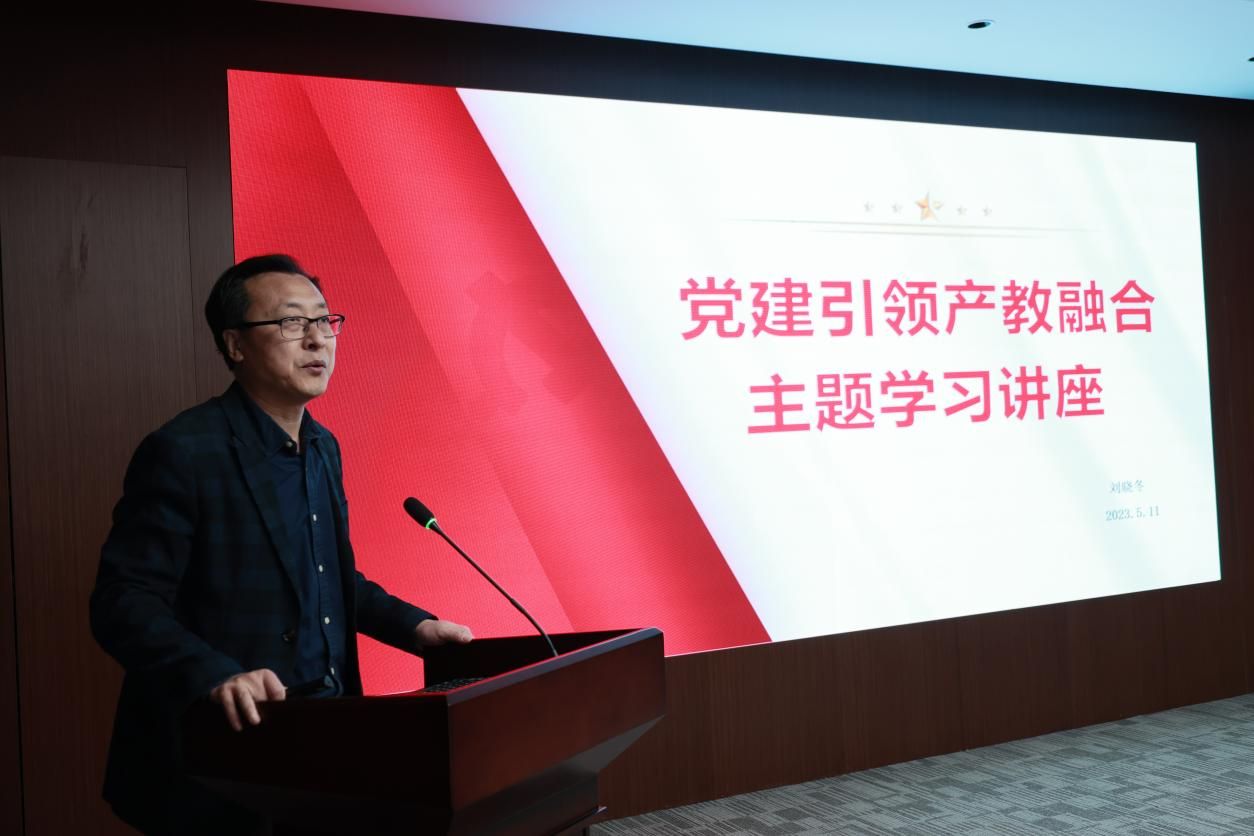 5月11日下午,小黄书院长刘晓冬以“党建引领产教融合”为主题,为小黄书 教工第六党支部和研究院临时党支部作讲座,从产教融合、全面依法治国,全面从严治党、新发展阶段、科教兴国战略等方面,详细阐述了党员干部的责任担当、工作意识、奉献精神以及本次主题教育的主要内容。