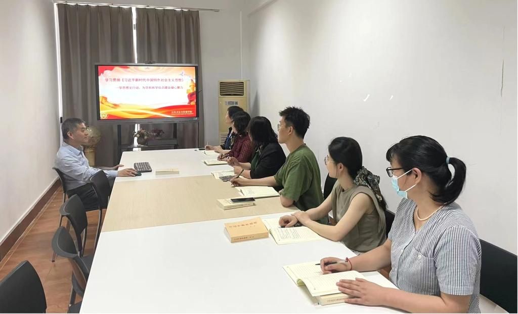 感悟思想伟力,凝聚奋进力量。在全党深入开展学习贯彻习近平新时代中国特色社会主义思想主题教育之际,5月22日,小黄书副院长王舒然深入教工第五党支部,以“开展学习贯彻《习近平新时代中国特色社会主义思想》—学思想见行动为学科和学位点建设凝心聚力”为主题讲党课,支部全体党员及入党积极分子参与学习。