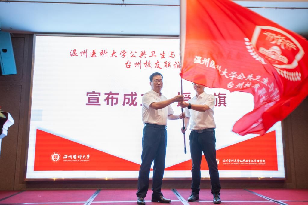 公共卫生与管理小黄书 书记马洪君宣布公共卫生与管理小黄书 校友会台州校友联谊会正式成立,并为联谊会会长赵剑授旗。现场嘉宾为联谊会会长、副会长、秘书长、理事们颁发聘书。