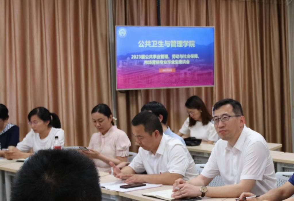 随后,学生代表与教师代表就考研、考公、就业、论文撰写以及课程设置展开热烈讨论,各位老师热情地为同学们解疑答惑,公共事业管理、劳动与社会保障以及市场营销专业就业广泛,不止局限于管理岗位,充分利用医药背景和知识积极参与数据分析以及医药代表等行业,根据自身发展情况,选择感兴趣的;考公考编要注重日常积累,日常生活中多与同学们互相交流,加强沟通,互相共享补充知识点,不断回顾错题;面试时要冷静自信,回答问题条例要清晰流畅。