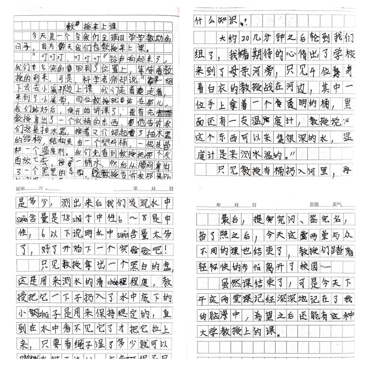 在“五水共治进校园”活动中,双方共同给4年级3班的40多个孩子上了一堂科学课。在野外,工作人员组织孩子们到温瑞塘河的母亲河之一——瞿溪现场,示范了水样采集,并介绍了水温、pH值、透明度等水质参数的检测方法。随后,孩子们踊跃报名,亲自操作,并做好现场记录。在室内,工作人员介绍了水环境与人群健康的关系,指出人类要学会与自然和谐相处、协调发展,并初步介绍了水质走航在线监测、航空遥感、航天遥感等技术在环境治理和保护中的作用。孩子们热情高涨,纷纷表示要努力学习科学技术,将来要做优秀的“后浪”。活动结束后,孩子们意犹未尽,要求多开展类似活动,并积极撰写收获报告。