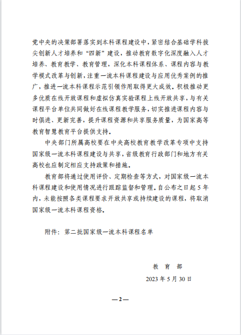 第二批国家级一流本科课程入选名单