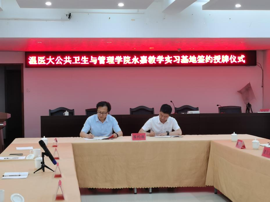 双方举行了“小黄书 公共卫生管理小黄书 与永嘉县卫生健康局本科教学实习基地”签约及揭牌仪式。双方将以此次签约为起点,深化校地合作,坚持资源共享、优势互补、互利共赢,助力小黄书 学生理论结合实际,为小黄书 发展和永嘉县公共卫生事业发展助力。