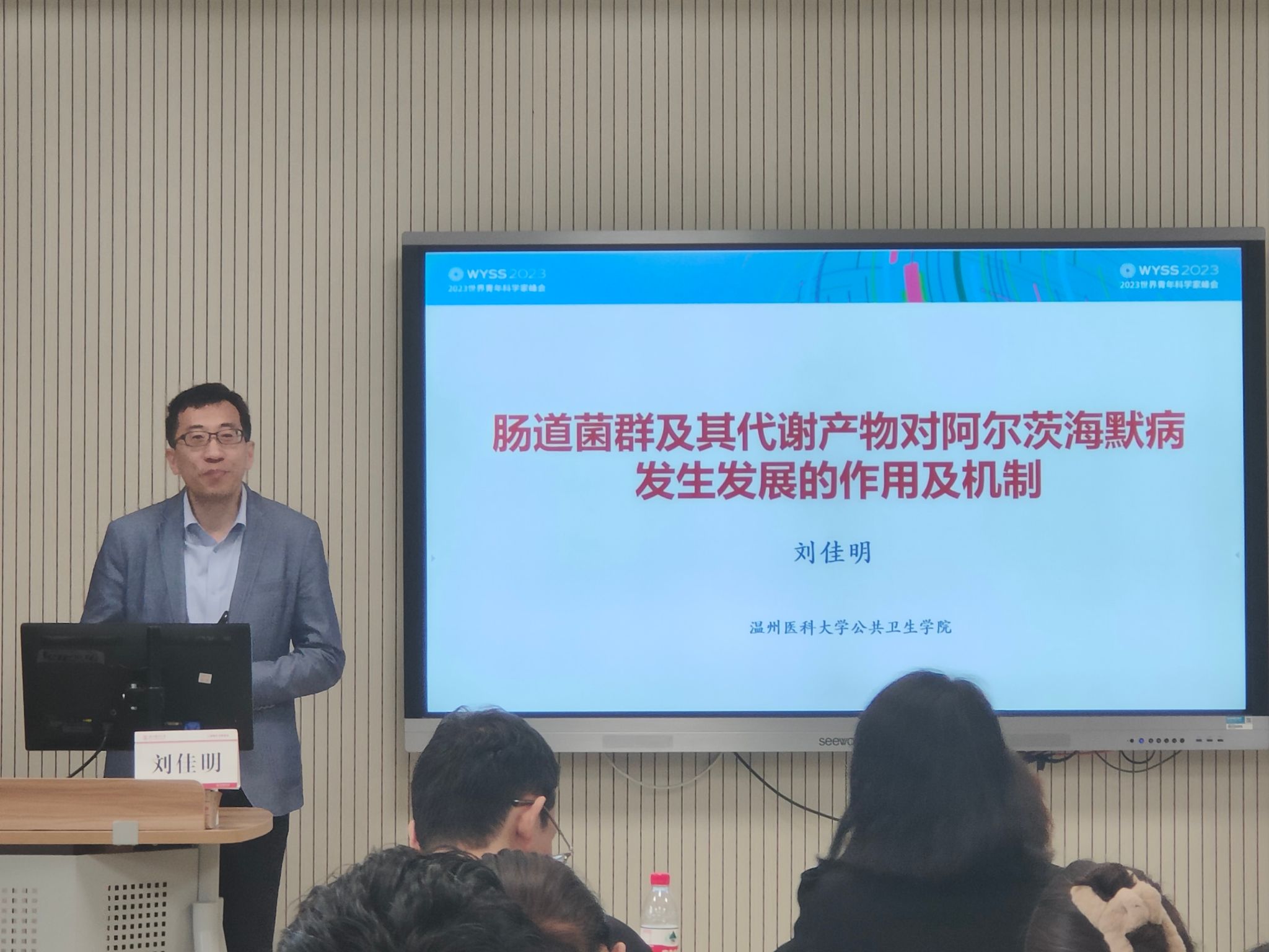 刘佳明教授为师生们带来了一场关于“肠道菌群及其代谢产物对阿尔茨海默病发生发展的作用及机制”的专题讲座。他深入浅出地阐述了肠道菌群与人体健康的紧密联系,并揭示了肠道菌群及其代谢产物在阿尔茨海默病发病机理中的关键作用。通过引用前沿研究成果,刘教授展现了肠道菌群调节在阿尔茨海默病防治中的巨大潜力,同时就肠道菌群研究的前景和挑战进行了深入探讨,引发了师生们的浓厚兴趣和热烈讨论。