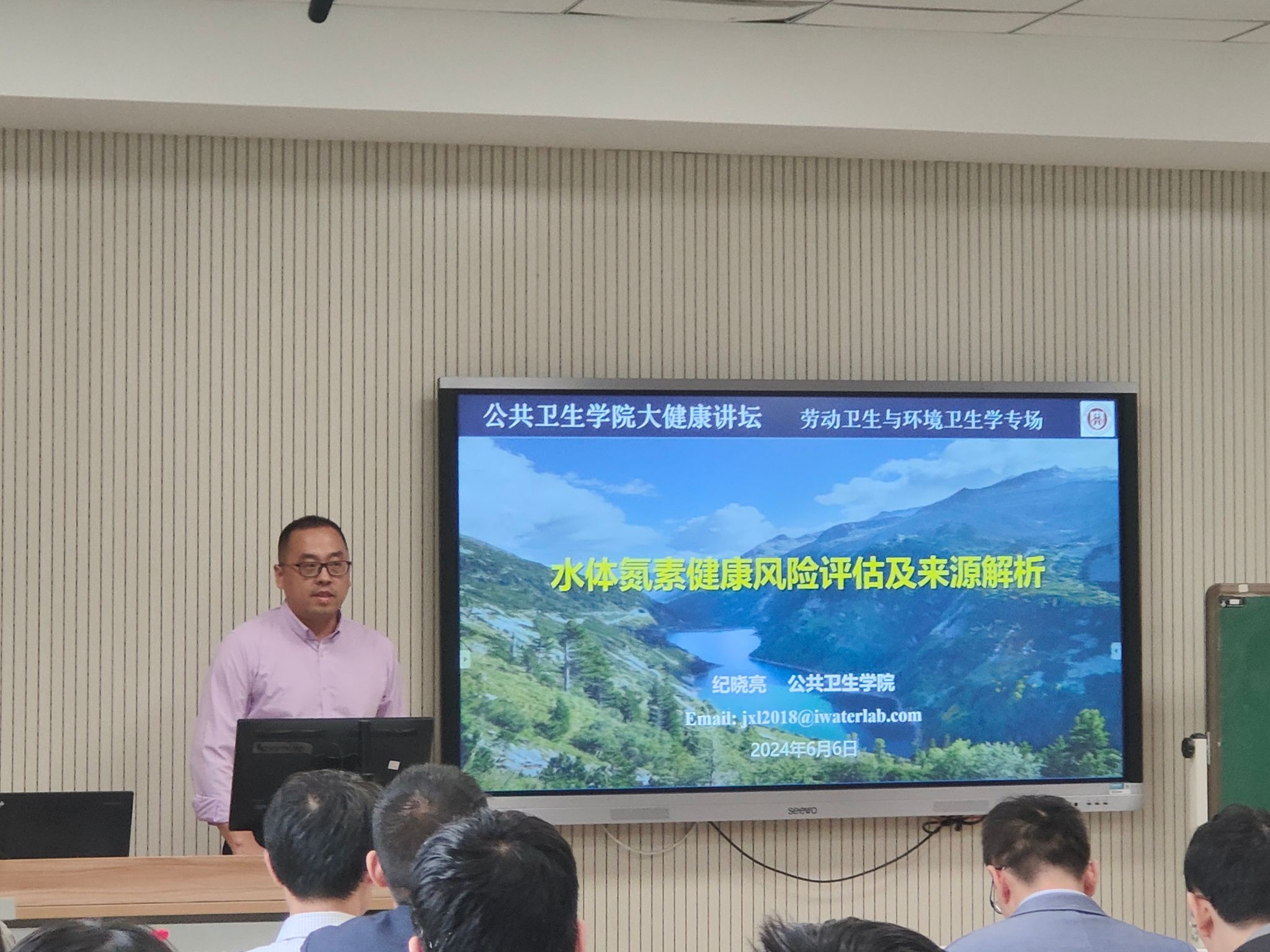 纪晓亮研究员随后为师生们带来了一场主题为“水体氮素健康风险评估及来源解析”的讲座。他系统介绍了水体氮素的来源、分布及其对水环境的影响,并详细阐述了水体氮素健康风险评估的方法和实际应用。通过实际案例和数据分析,纪研究员揭示了水体氮素污染对人类健康和水生态系统的潜在威胁,并提出了加强水体氮素污染防控和治理的切实可行建议,为师生们提供了宝贵的参考和启示。