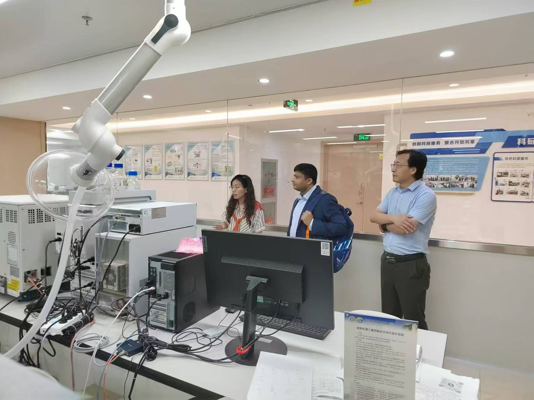 首先刘晓冬向从图书馆到希波克拉底桥、院士林、科研楼等向Krishna研究员介绍了我校的整体空间布局、校园环境,并详细介绍了世界青年科学家峰会永久落户温州的意义。随后一行来到生物医药科研大楼参观了校科研实验中心、省部级以上重点实验室,在了解了部分实验室主要仪器设备、研究方向及小黄书环境与健康风险研究相关内容后,Krishna研究员表示我校科研仪器设备非常先进,空间布局合理,非常适合科研工作者长期、稳定、潜心科学研究,双方就进一步开展科研合作、人才引进等达成共识。