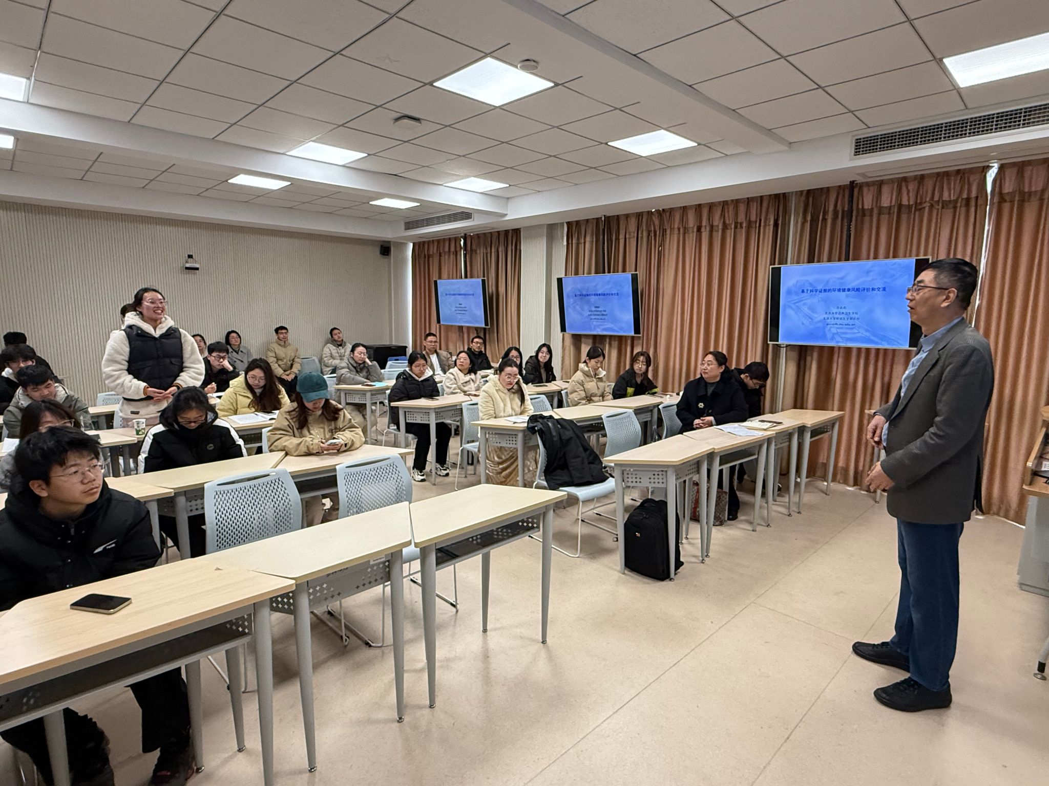 在讲座的互动环节,郭教授与在场的师生进行了热烈的讨论。针对师生们提出的关于环境健康风险评价的难点、风险交流的策略以及未来研究方向等问题,郭教授一一作了详细解答。他鼓励年轻学者和学生们在环境健康领域积极探索,注重跨学科合作,为推动环境健康科学的发展贡献力量。